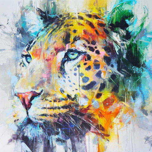 A majestic depiction of the African lion, radiating strength and pride through a vivid blend of colour, emotion, and bold abstraction. Baruti meaning the wise one.